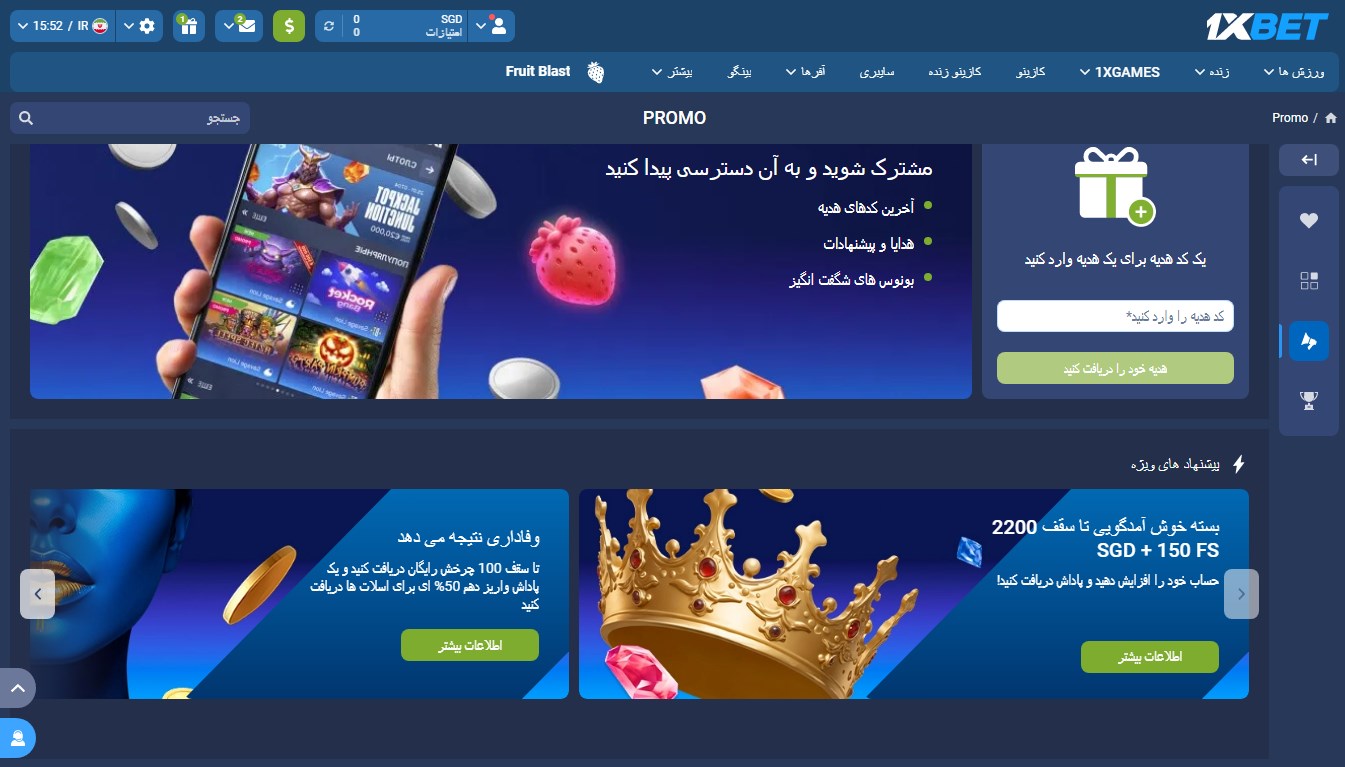 ویژگی های پرومو کد و بونوس های 1XBet